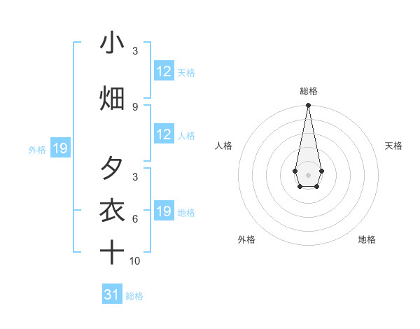 小畑 夕衣十さんを姓名の画数から五運を鑑定