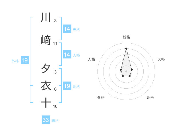 川﨑 夕衣十さんの総格は33画の4点