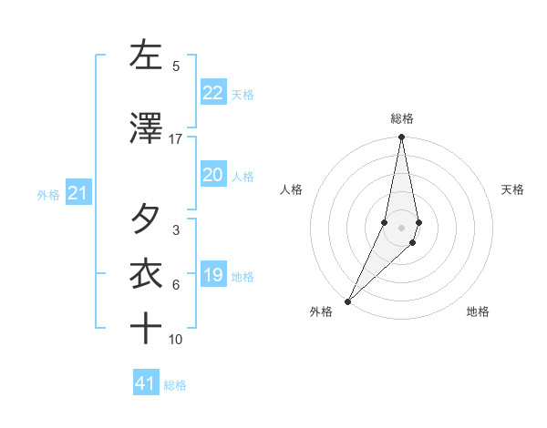 左澤 夕衣十さんを姓名の画数から五運を鑑定