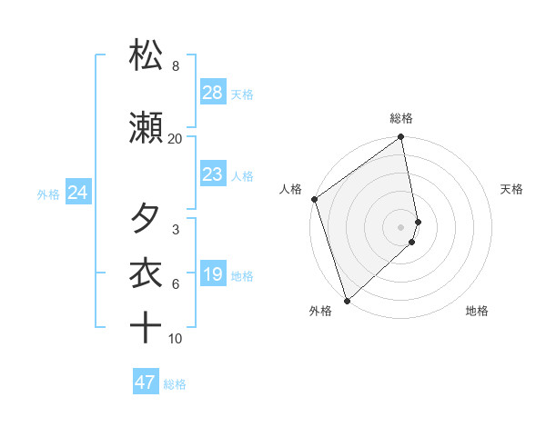 松瀬 夕衣十さんを姓名の画数から五運を鑑定
