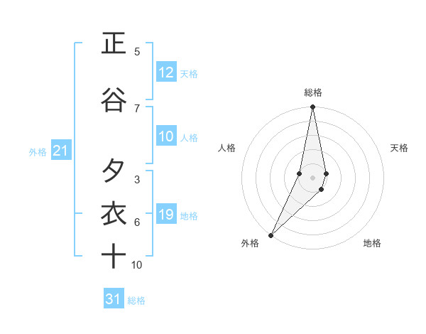 正谷 夕衣十さんを姓名の画数から五運を鑑定