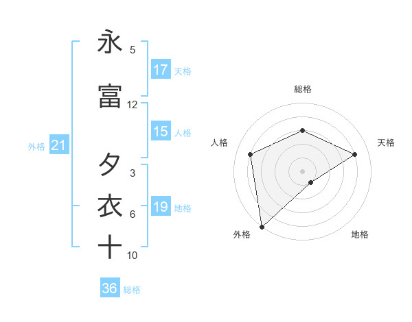 永富 夕衣十さんを姓名の画数から五運を鑑定