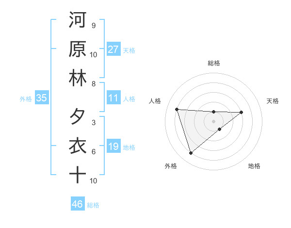 河原林 夕衣十さんを姓名の画数から五運を鑑定