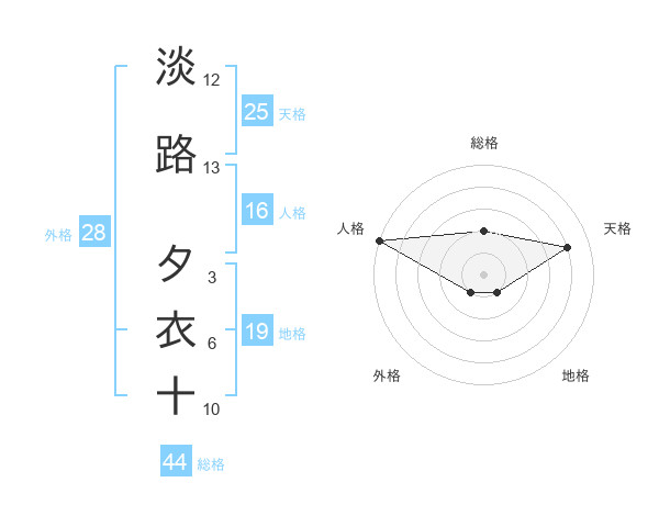 淡路 夕衣十さんを姓名の画数から五運を鑑定