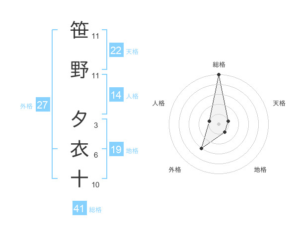 笹野 夕衣十さんを姓名の画数から五運を鑑定