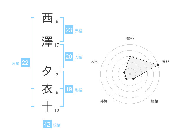 西澤 夕衣十さんを姓名の画数から五運を鑑定
