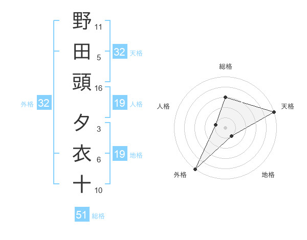 野田頭 夕衣十さんを姓名の画数から五運を鑑定