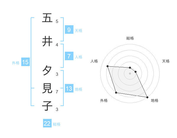 五井 夕見子さんの総格は22画の1点!