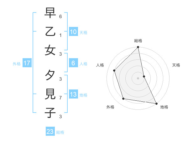 早乙女 夕見子さんを姓名の画数から五運を鑑定