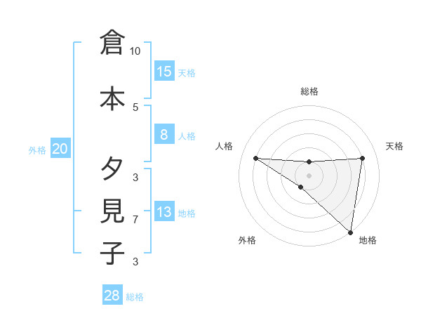 倉本 夕見子さんの天格は15画の4点