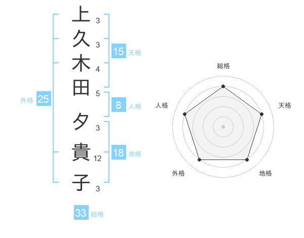 上久木田 夕貴子さんを姓名の画数から五運を鑑定
