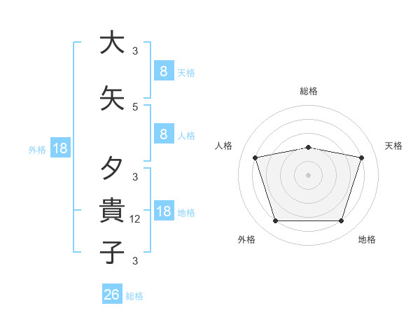 大矢 夕貴子さんを姓名の画数から五運を鑑定