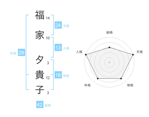 福家 夕貴子さんを姓名の画数から五運を鑑定