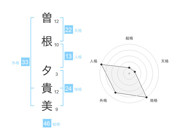 曽根 夕貴美さんを姓名の画数から五運を鑑定