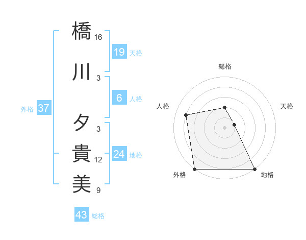 橋川 夕貴美さんを姓名の画数から五運を鑑定