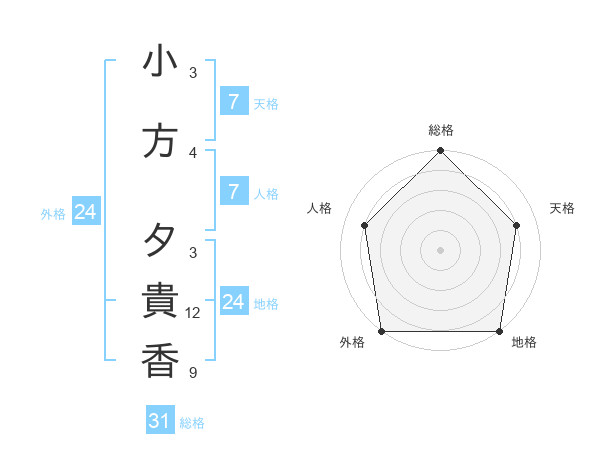 小方 夕貴香さんの総格は31画の5点