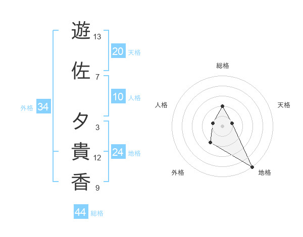 遊佐 夕貴香さんの総格は44画の2点!