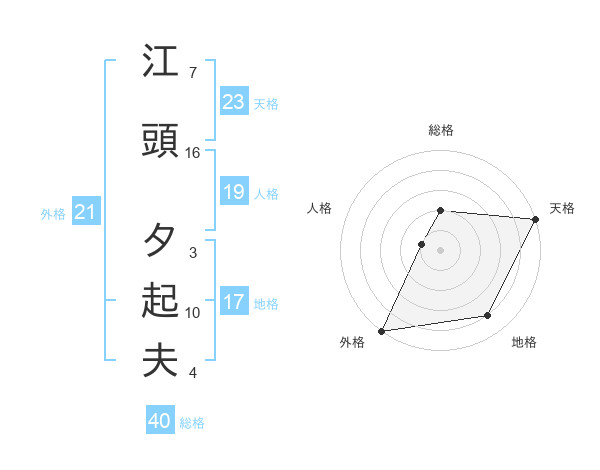 江頭 夕起夫さんを姓名の画数から五運を鑑定