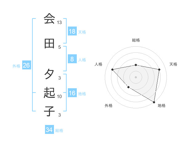 会田 夕起子さんを姓名の画数から五運を鑑定