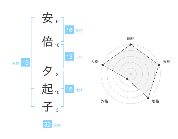 安倍 夕起子さんを姓名の画数から五運を鑑定