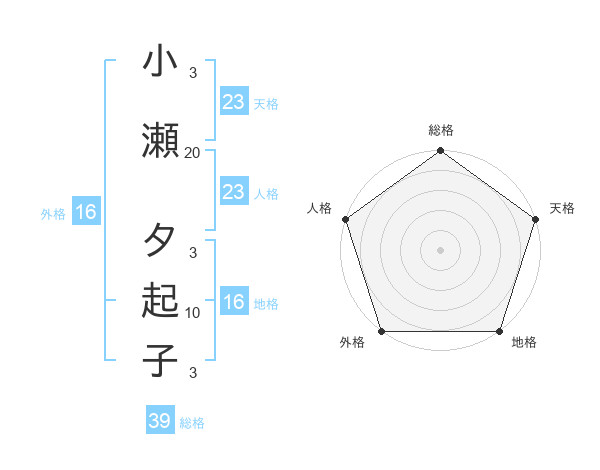 小瀬 夕起子さんを姓名の画数から五運を鑑定