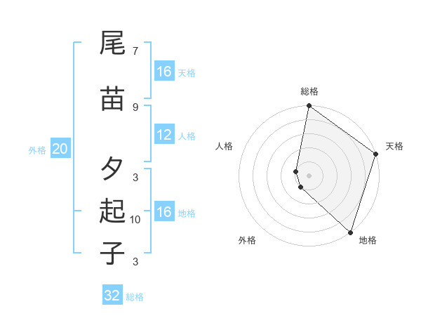 尾苗 夕起子さんを姓名の画数から五運を鑑定