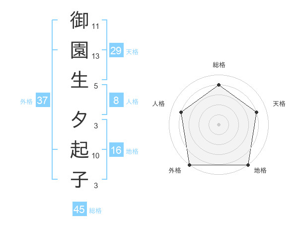 御園生 夕起子さんを姓名の画数から五運を鑑定