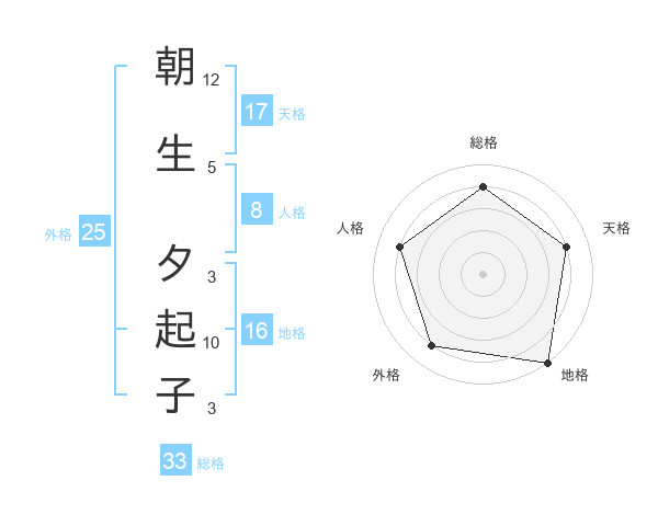 朝生 夕起子さんを姓名の画数から五運を鑑定