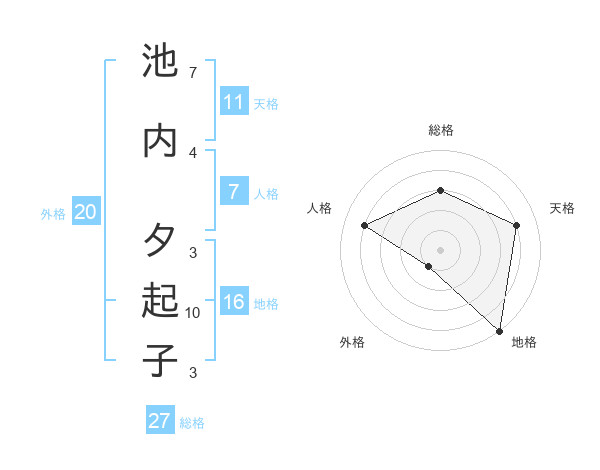 池内 夕起子さんを姓名の画数から五運を鑑定