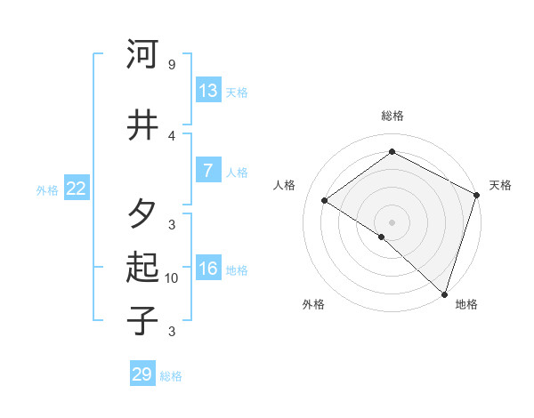 河井 夕起子さんの総格は29画の4点!
