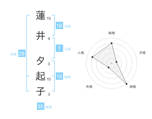 蓮井 夕起子さんを姓名の画数から五運を鑑定