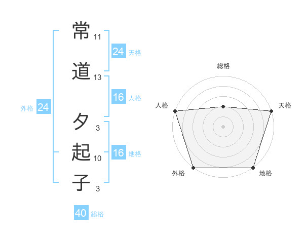 常道 夕起子さんの天格は24画の5点!