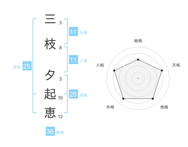 三枝 夕起恵さんの天格は11画の4点