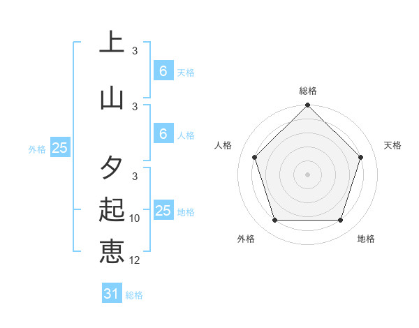 上山 夕起恵さんの総格は31画の5点!