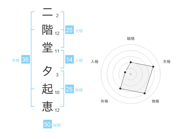 二階堂 夕起恵さんを姓名の画数から五運を鑑定