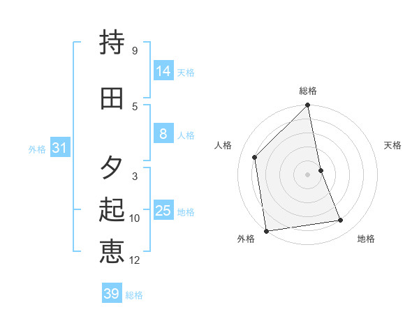 持田 夕起恵さんの外格は31画の5点!