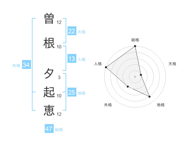 曽根 夕起恵さんの総格は47画の5点!