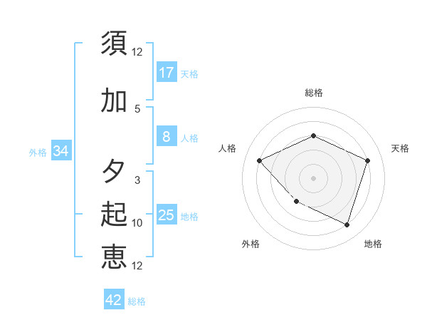 須加 夕起恵さんを姓名の画数から五運を鑑定