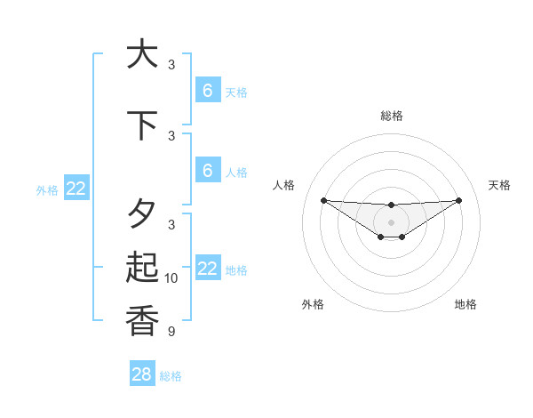 大下 夕起香さんを姓名の画数から五運を鑑定