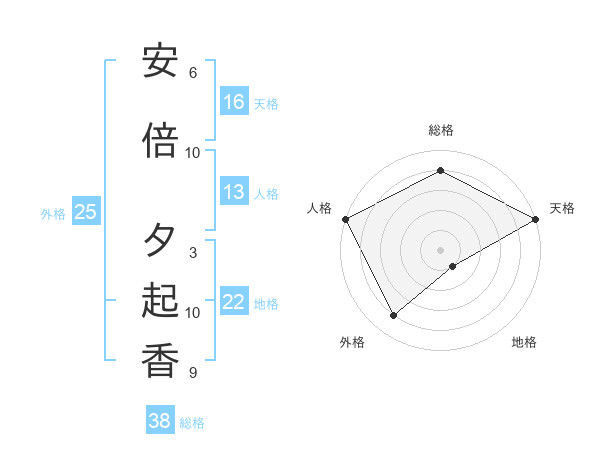 安倍 夕起香さんを姓名の画数から五運を鑑定