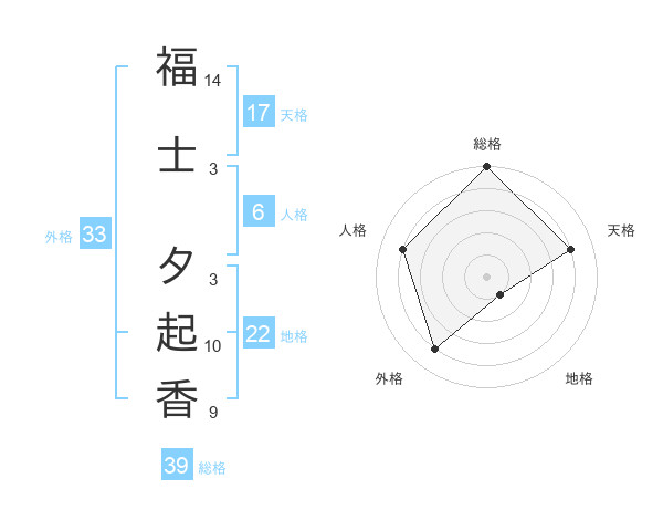 福士 夕起香さんを姓名の画数から五運を鑑定