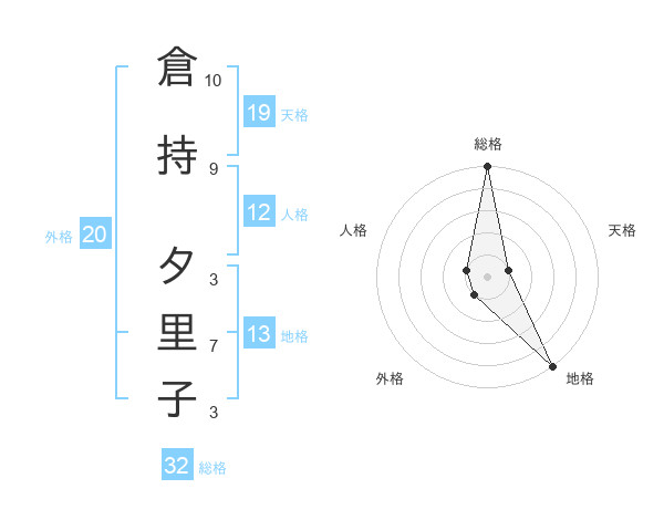 倉持 夕里子さんを姓名の画数から五運を鑑定