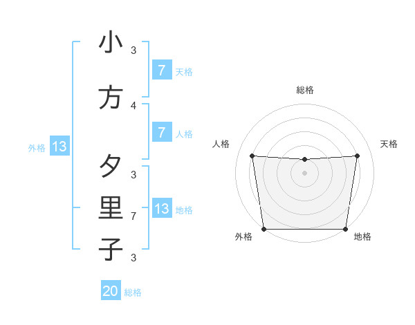 小方 夕里子さんを姓名の画数から五運を鑑定