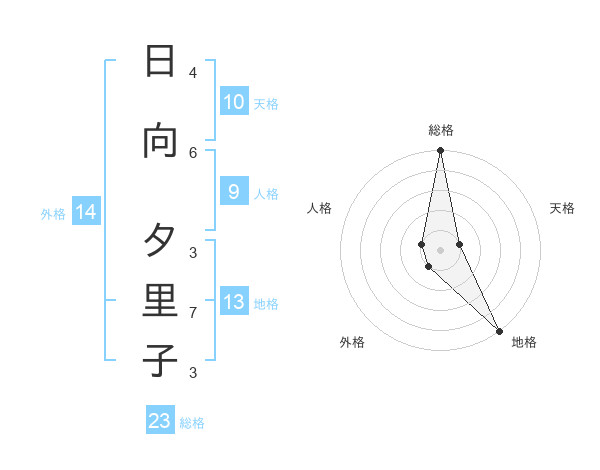 日向 夕里子さんを姓名の画数から五運を鑑定