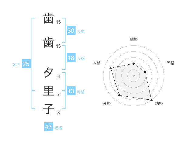 歯歯 夕里子さんの天格は30画の2点!