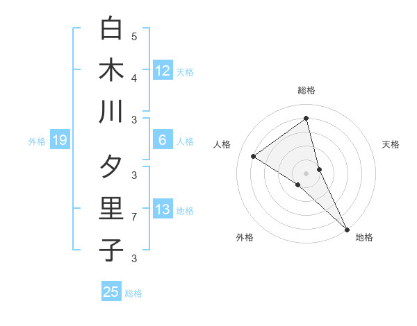 白木川 夕里子さんの総格は25画の4点!