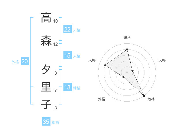 高森 夕里子さんを姓名の画数から五運を鑑定