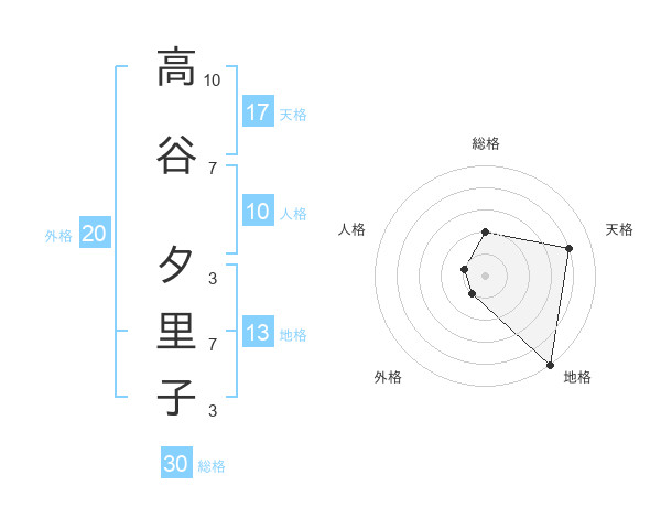 高谷 夕里子さんを姓名の画数から五運を鑑定