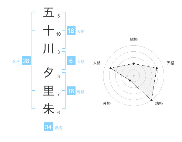 五十川 夕里朱さんの天格は18画の4点!