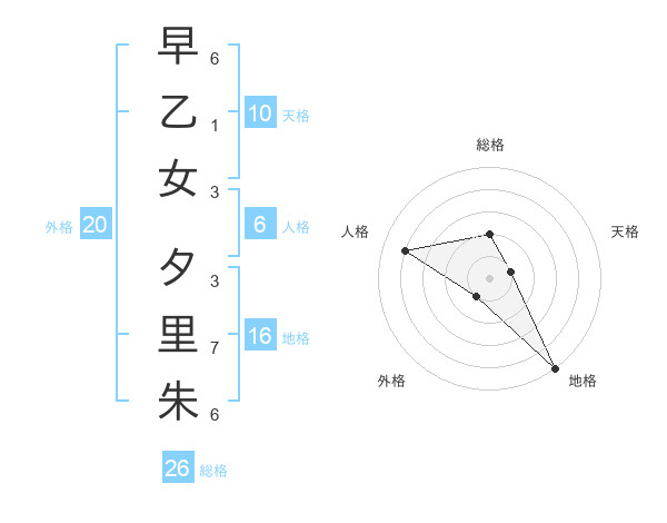 早乙女 夕里朱さんを姓名の画数から五運を鑑定